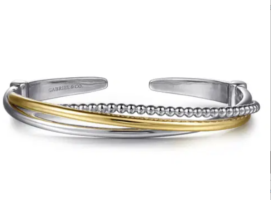 Gabriel & Co - Bujukan Collection - Sterling Silver & 14KT Yellow Gold 6.25" Twisted Bangle Bracelet, Serial No: S2165223