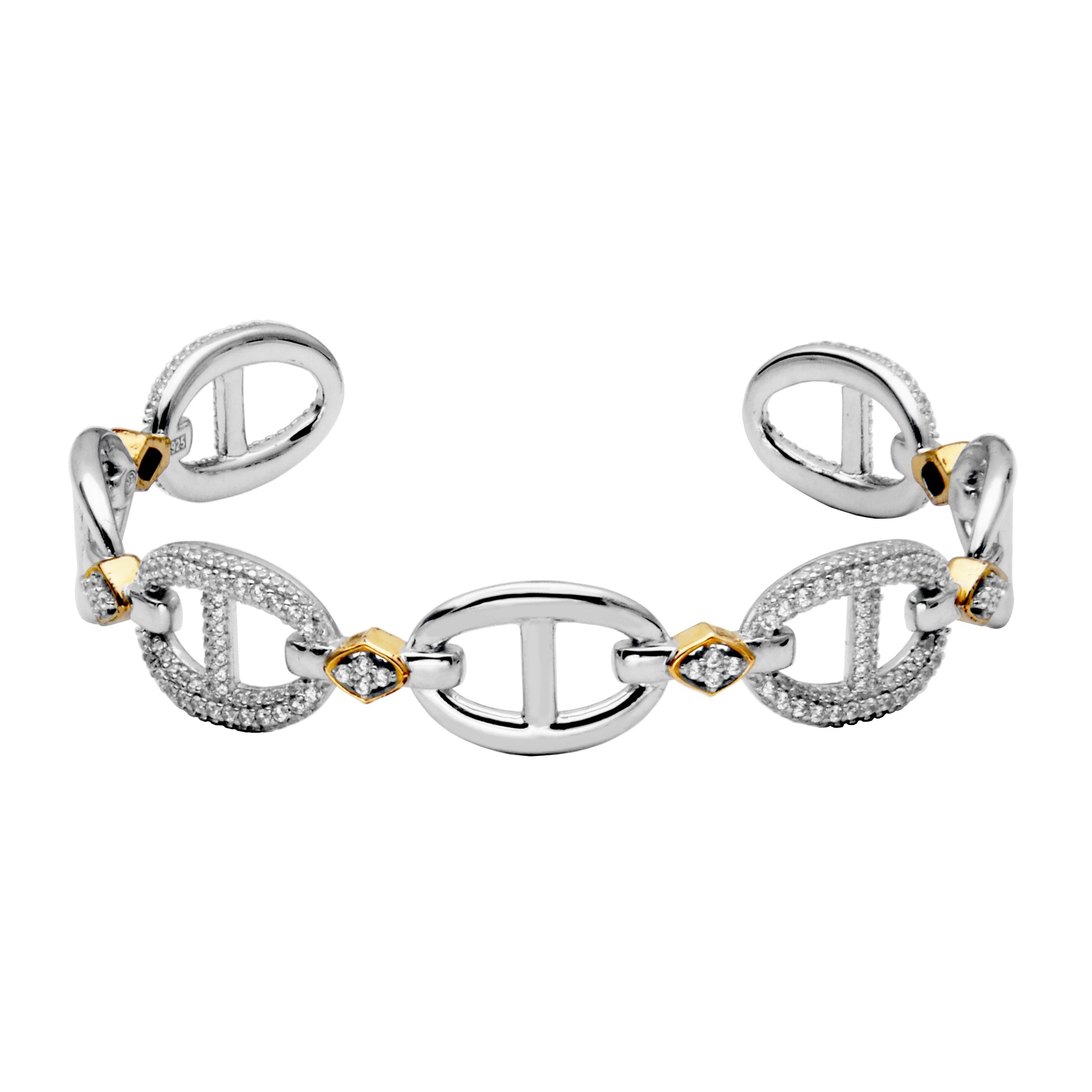Charles Garnier - Marina Collection - Sterling Silver & 14KT Yellow Gold Rhodium Plated 6.75" CZ Cuff Bracelet