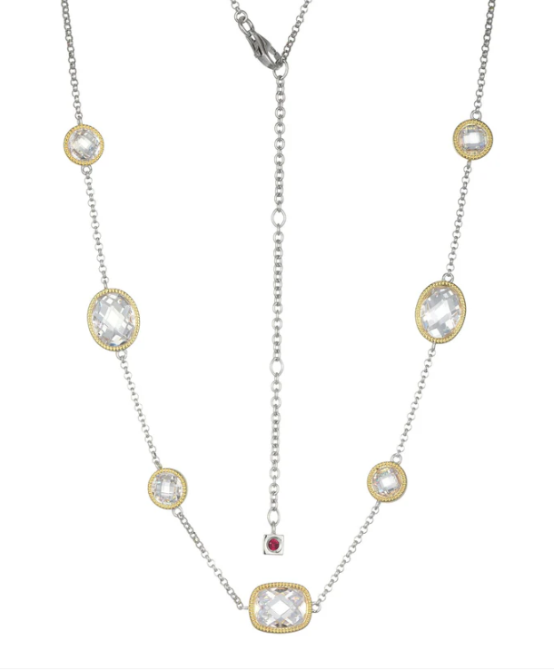 ELLE - Essence Collection - Sterling Silver & Yellow Gold Rhodium Plated 17"+3" CZ Station Necklace