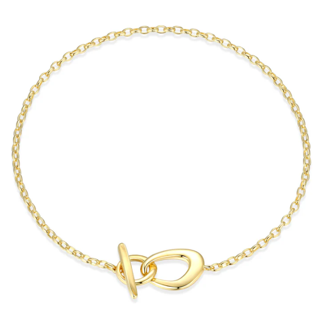 ELLE - Celeste Collection - Sterling Silver Yellow Gold Rhodium Plated 7.25" Organic Toggle Bracelet