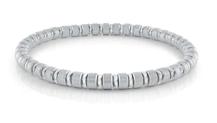 8" Stainless Steel Satin Finish Stretch Disk Beaded Bracelet