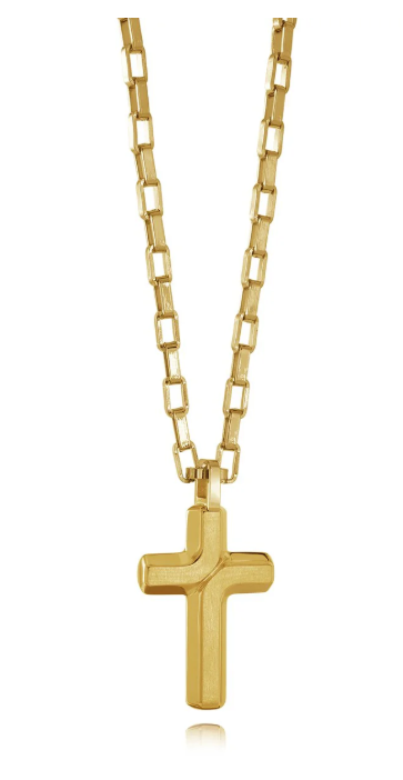 Gold-IP Plated Stainless Steel Mini Brushed Finish Cross Pendant with 20" Open Link Necklace