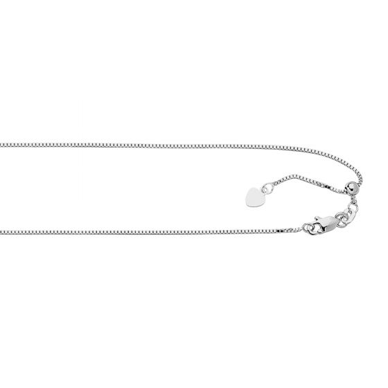 Sterling Silver 22" 0.8mm Rhodium Finish Diamond-Cut Adjustable Box Chain with Lobster Clasp