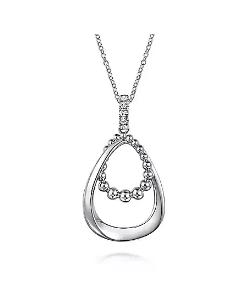 Gabriel & Co - Bujukan Collection - Sterling Silver 17.5" White Sapphire Pendant Drop Necklace, SA: 0.24ct t.w., Serial No: S1749815