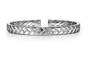 Gabriel & Co - Facets Collection - 7.25" Sterling Silver Open Herringbone Cuff Bangle, Serial No: S1742701