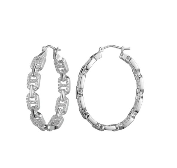 Charles Garnier - New Mesh Collection - Sterling Silver Rhodium Plated Classic Mesh CZ Hoop Earrings