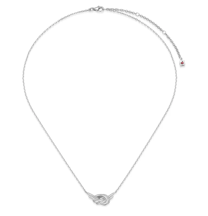 ELLE - Unity Collection - Sterling Silver Rhodium Plated 17"+3" CZ Knot Pendnat Necklace