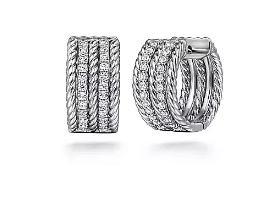 Gabriel & Co - Hampton Collection - Sterling Silver 15mm White Sapphire Huggie Earrings, SA: 0.63ct t.w., Serial No: S1749814