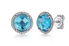 Gabriel & Co - Bujukan Collection - Sterling Silver Swiss Blue Topaz Stud Earrings, BT: 5.90ct t.w., Serial No: S1739243