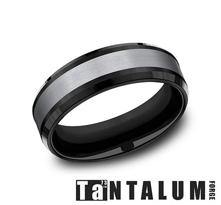 7mm Comfort Fit Grey Tantalum & Black Titanium Band with Satin Finish in center & Drop Beveled Edge, Size 10